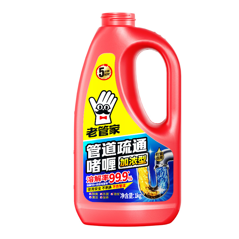 高效疏通:啫喱质地,穿透积水,直达堵塞源,包裹堵塞物,渗透瓦解,5 分钟快速起效。