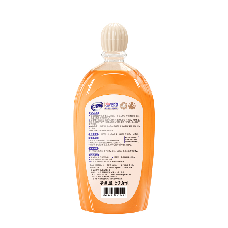 轻松除污:本品含强力去污因子,轻松去除多种顽固污渍。光亮快干:添加光亮成分,增强各类地板表面光亮度,令地板光亮如新,其快干配方,加快水渍挥发速度,清洁后不留水痕,地板干爽不粘脚。有效除菌:本品可有效去除大肠杆菌、金黄色葡萄球菌,呵护家人健康。清香祛味:令居室散发舒适清香。